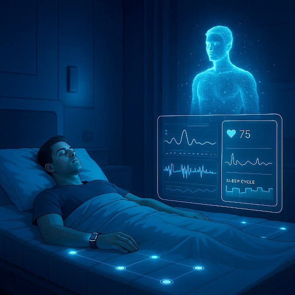 Our patented innovations leverage real-time biosensing to create dynamic digital replicas of users and their environments, advancing health and wellness far beyond traditional passive monitoring. By integrating advanced sensors, intelligent algorithms, and adaptive sleep systems, our digital twins not only track and analyze vital health metrics but also proactively optimize conditions for rest, recovery, and performance.